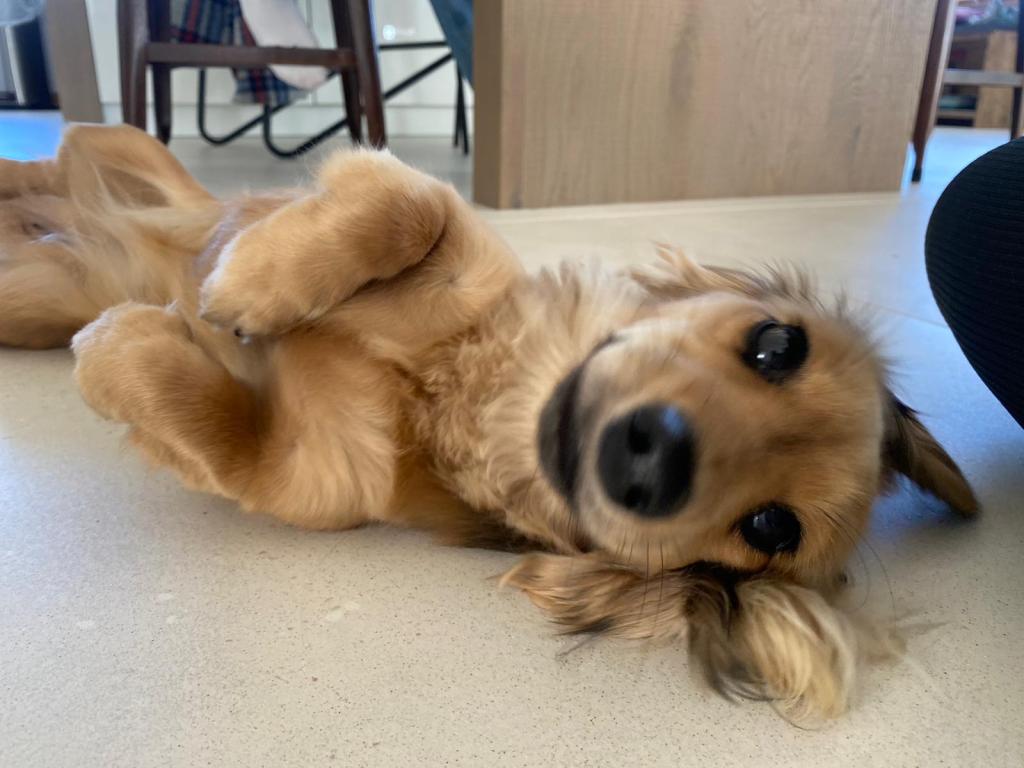 Monster dries the floofy sausage belly and toe beans. Then, it makes eye contact and speaks – like Mum, ‘Danni!’